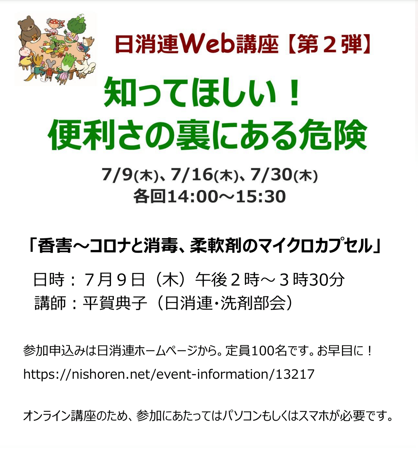 「香害 ~柔軟剤のマイクロカプセル コロナと消毒~」 *イベント告知