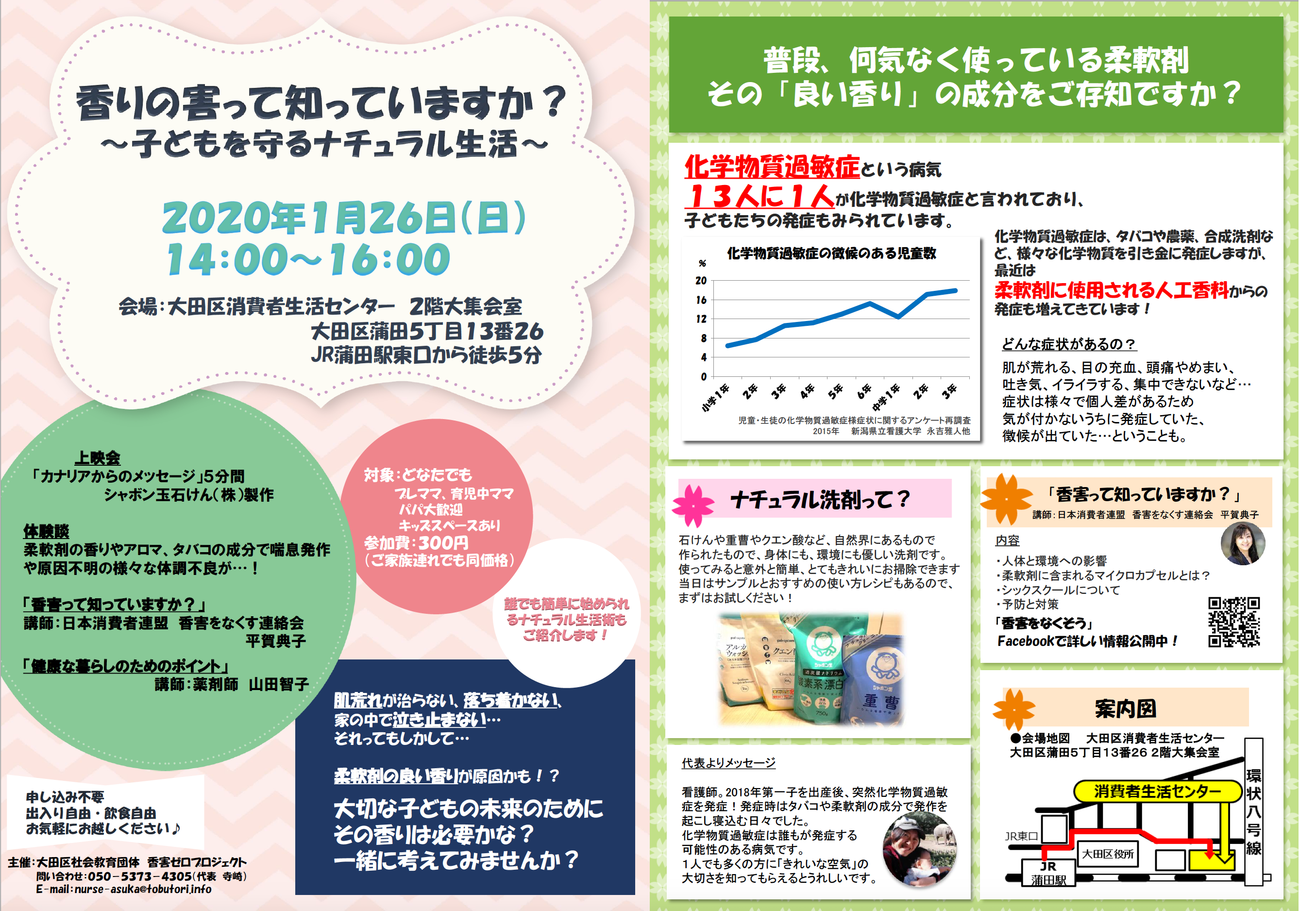 ■2020年1月26日 大田区社会教育団体 香害ゼロプロジェクト「香りの害って知っていますか? ~子どもを守るナチュラル生活~」