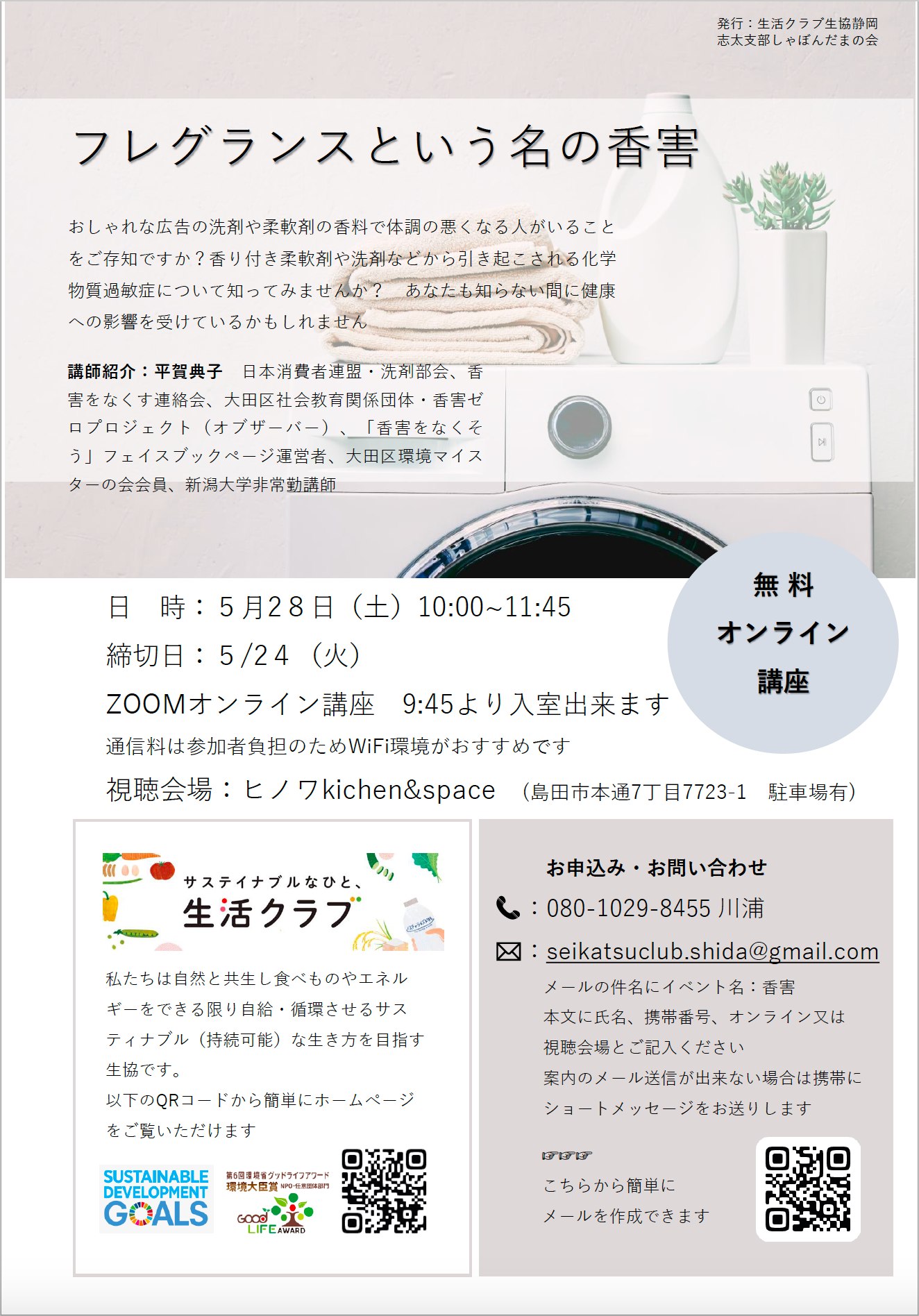 「香害は公害~見直そう毎日の暮らし方」 *イベント告知